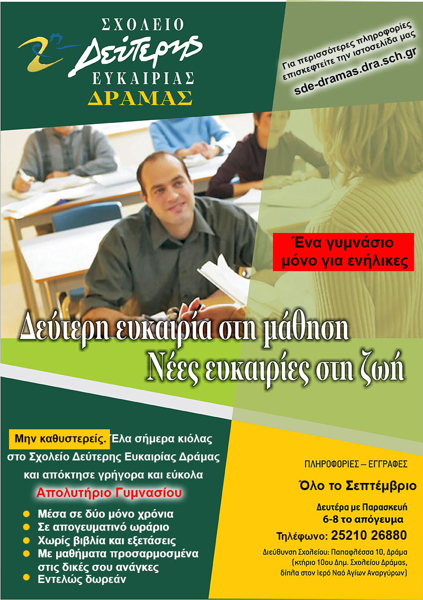 Ξεκίνησαν οι εγγραφές στο Σχολείο Δεύτερης Ευκαιρίας Δράμας για το 2024-2025