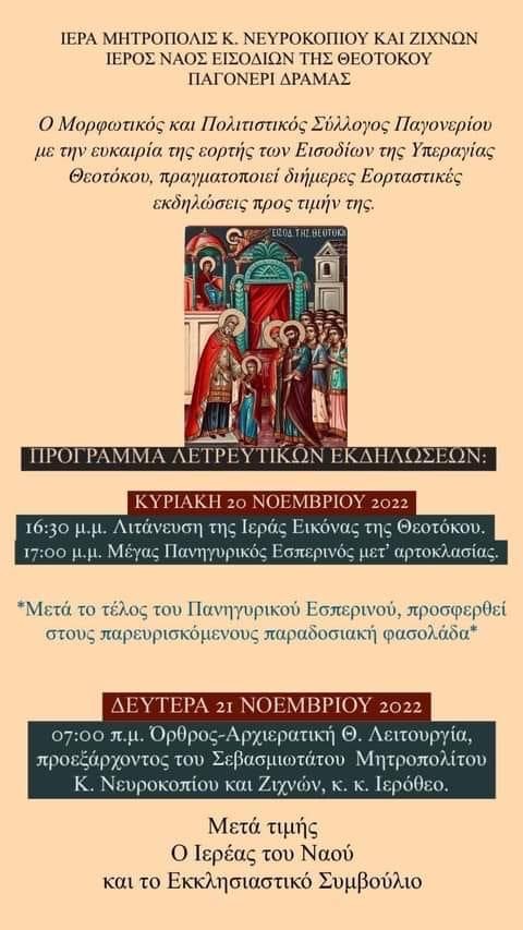 16 Νοε 2022 ΔΗΜΟΣ ΝΕΑ Πρόγραμμα εορτασμού ημέρας των ΕΝΟΠΛΩΝ ΔΥΝΑΜΕΩΝ 21-11-2022, στο Δήμο Κ. Νευροκοπίου.