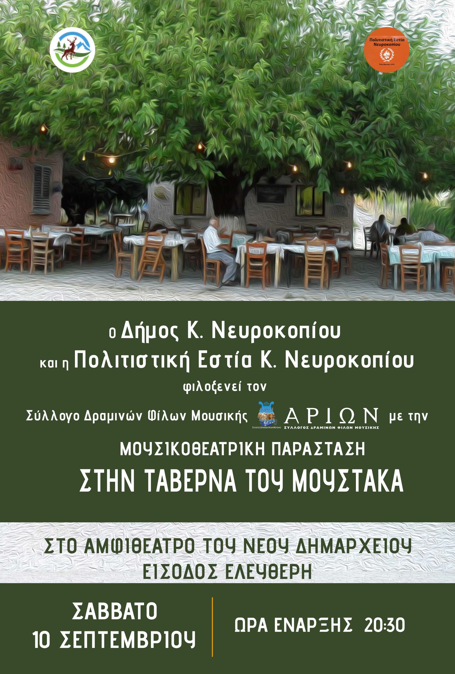 05 Σεπτεμβρίου, 2022 Ανακοινώσεις - ΝέαΕκδηλώσεις Μουσικοθεατρική παράσταση στην “ΤΑΒΕΡΝΑ ΤΟΥ ΜΟΥΣΤΑΚΑ”