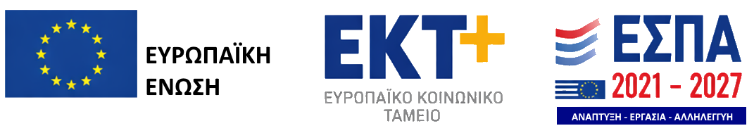 Η Πράξη υλοποιείται με τη συγχρηματοδότηση της Ευρωπαϊκής Ένωσης – Ευρωπαϊκό Κοινωνικό Ταμείο Plus (ΕΚΤ+), στο πλαίσιο του ΕΣΠΑ 2021–2027.