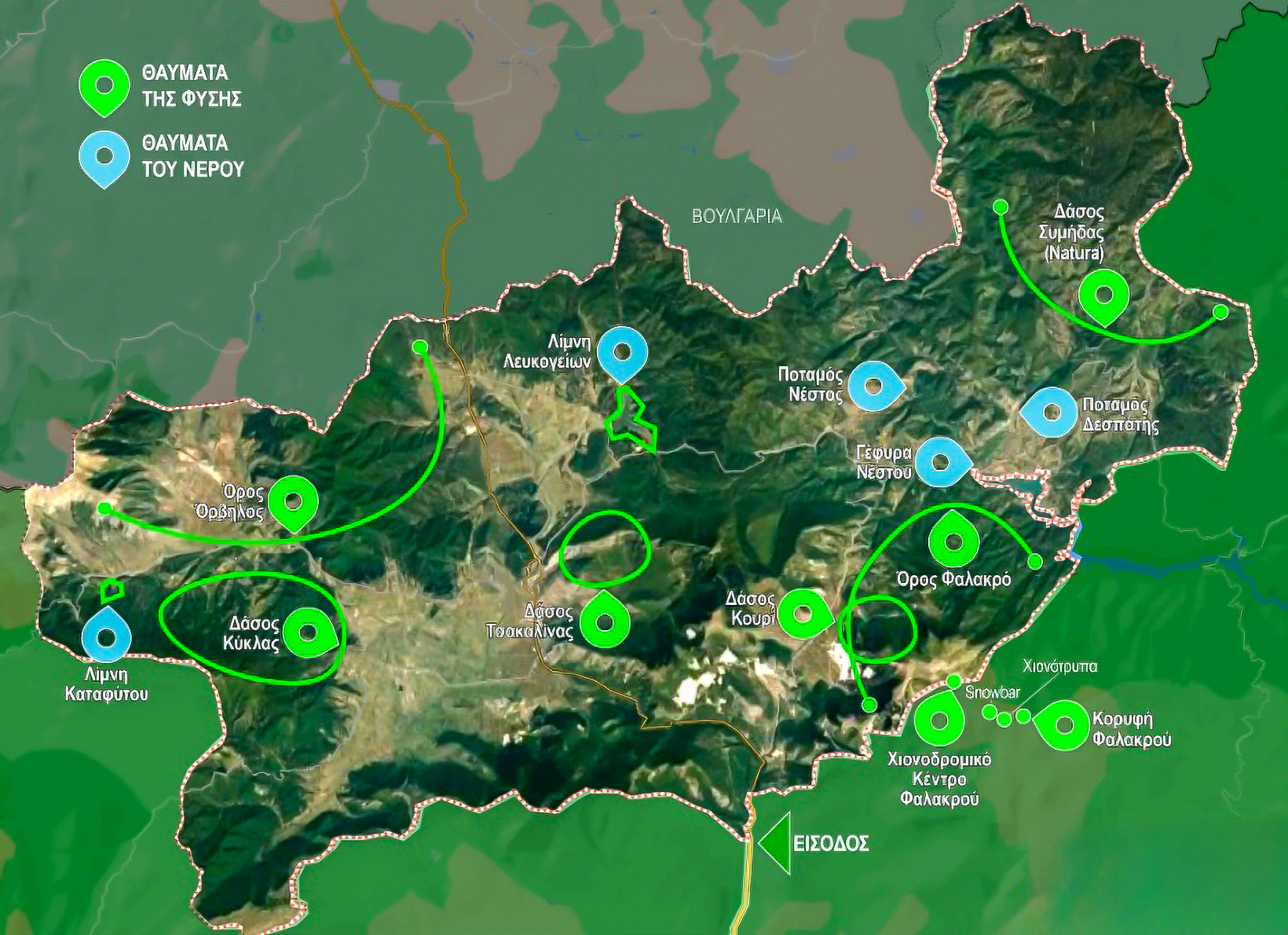 Η φύση, η ζωή της υπαίθρου και το ελληνικό τοπίο είναι χαρακτηριστικά γνωρίσματα του Κάτω Νευροκοπίου. Ο επισκέπτης θα έχει την δυνατότητα να απολαύσει την ομορφιά και την γαλήνη του πράσινου τοπίου. Στο Κάτω Νευροκόπι μπορεί κανείς να συναντήσει και να έρθει σε επαφή με τον δασικό πλούτο, την άγρια πανίδα και χλωρίδα καθώς και τα παρθένα δάση που θα μείνουν ανεξίτηλα στην μνήμη του επισκέπτη. Υπέροχες περιοχές για περιβαντολογικές περιπλανήσεις κοντά σε βουνοπλαγιές με τις ιδιομορφίες της η κάθε μία περιτριγυρισμένες από πλούσια βλάστηση, λίμνες, ποτάμια και υπέροχους κρυφούς καταρράκτες που θα σε κάνουν να αισθανθείς μια απέραντη ελευθερία, γαλήνη και ηρεμία. Ενδεικτικά , ο επισκέπτης μπορεί να κάνει περιηγήσεις στα μονοπάτια των βουνών του Κάτω Νευροκοπίου. Επίσης, μπορεί να επισκεφτεί την τεχνητή λίμνη του Καταφύτου, των Λευκογείων και των Ποταμών. Ακόμη, μπορεί να απολαύσει τους κρυμμένους καταρράκτες που κάνουν αισθητό το υγρό στοιχείο μέσα στην άγρια φύση. Τέλος, έχουν την δυνατότητα οι επισκέπτες, περιηγητές να απολαύσουν το παρθένο δάσος της Ελατιάς ή αλλιώς Καράντερε. Η φύση από μόνη της είναι τόσο μαγική που σου διεγείρει όλες σου τις αισθήσεις, με τα μάτια δε προφταίνεις τι να πρωτοπαρατηρήσεις, με τα αυτιά τι να πρωτοακούσεις, με τι μύτη τι να πρωτοοσφρηνθείς, με τα χέρια τι να πρωτοαγγίξεις, με το στόμα πόσες και πόσες γεύσεις μπορείς να δοκιμάσεις, οι εμπειρίες με το κάθε αισθητήριο όργανο απεριόριστες και μοναδικές.