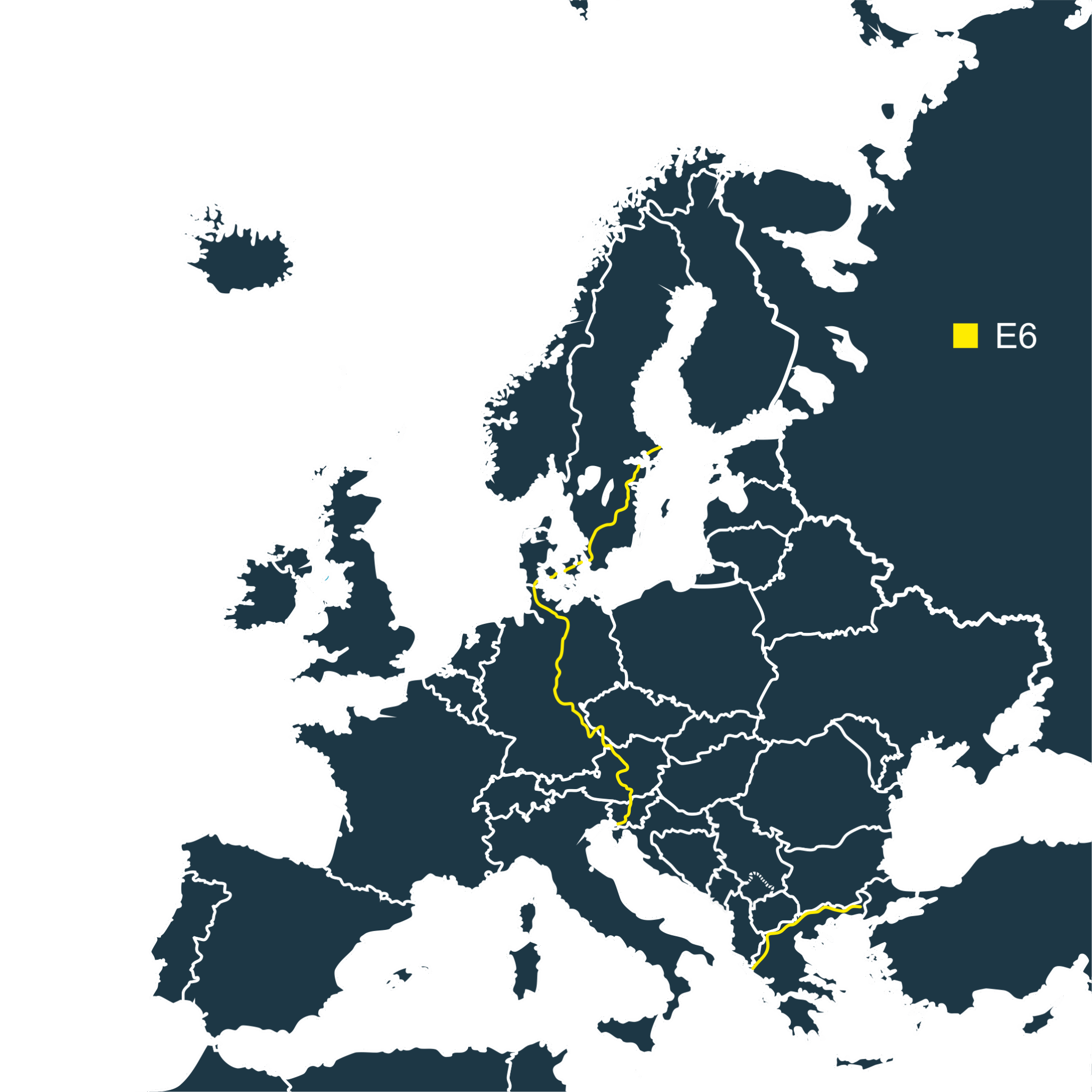 Το Ε6 αποτελεί ένα εμπνευσμένο ευρωπαϊκό μονοπάτι μεγάλων αποστάσεων, συνολικού μήκους περίπου 6.000 χιλιομέτρων. Ξεκινά από τη Σκανδιναβική Χερσόνησο (Φινλανδία ή Σουηδία) και, διασχίζοντας τη Δανία, τη Γερμανία, την Τσεχία, την Αυστρία και τη Σλοβενία, καταλήγει στην Ελλάδα, όπου διανύει τα τελευταία 1.000 χιλιόμετρά του.