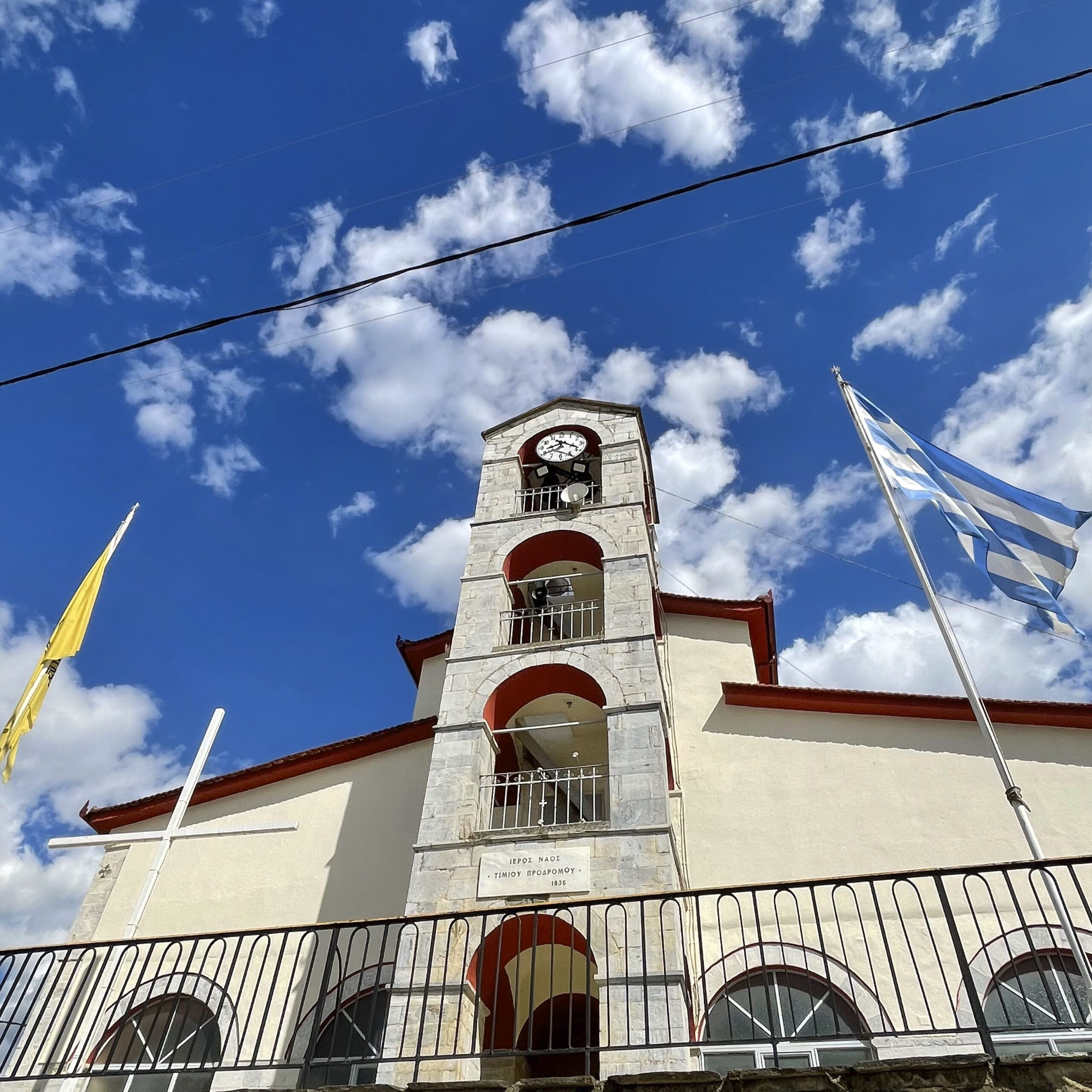 Βορειοανατολικά από το Χρυσοκέφαλο ο δρόμος συνεχίζει στα Λευκόγεια, που βρίσκονται σε υψόμετρο 600 μ. και σε απόσταση 8 χλμ. από το Νευροκόπι. Εκεί δεσπόζει η μεταβυζαντινή εκκλησία της Αποκεφαλίσεως του Ιωάννη του Προδρόμου, η οποία χτίστηκε το 1836. Ανήκει στην κατηγορία των τρίκλιτων ξυλόστεγων βασιλικών και στο μέσο της δυτικής της πλευράς υψώνεται το επιβλητικό κωδωνοστάσιο του 1887.
